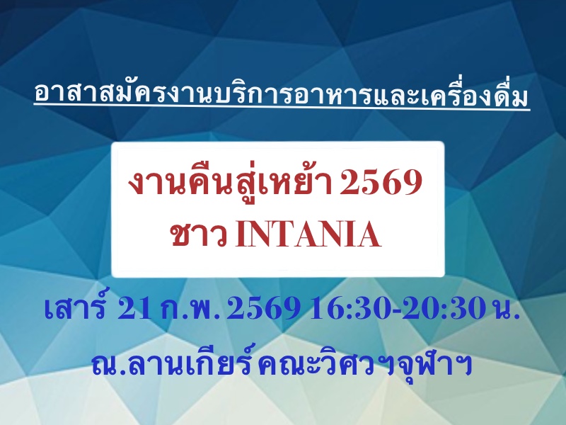อาสาสมัครงานบริการอาหารและเครื่องดื่ม งานคืนสู่เหย้า 2569 ชาว Intania